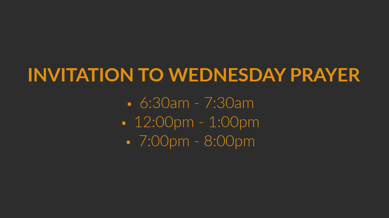 On these Wednesdays- Oct. 8th, 15th, & 22nd- our church doors will be open for corporate prayer at 6:30am-7:30am; 12:00pm-1:00pm; and 7:00pm-8:00pm. We'll have time in worship, along with guided moments of prayer.